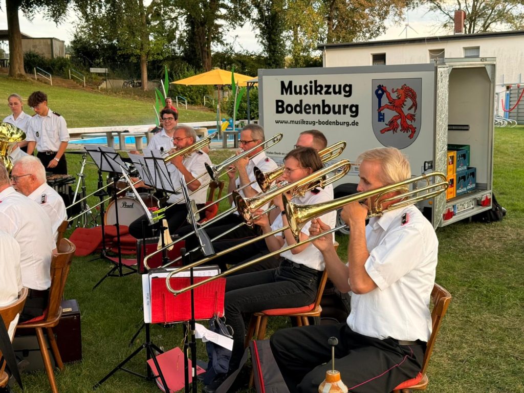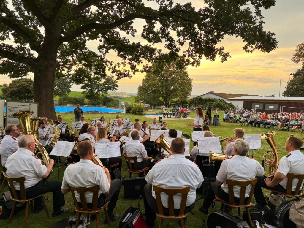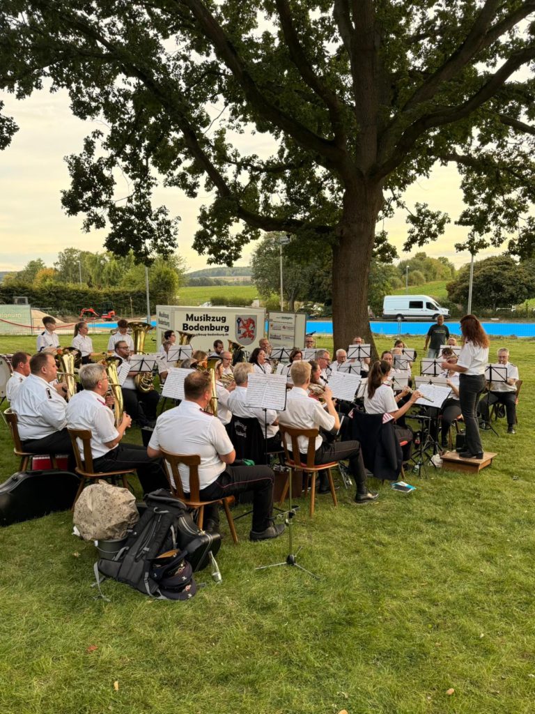 Am 20. September hat der Musikzug Bodenburg passend zum letzten Spätsommertag zu einer Serenade im Freibad geladen. Bei warmen Temperaturen wurden auf der Liegewiese Picknickdecken und Campingstühle ausgebreitet, beste Verpflegung wurde durch die Hausherren, dem Freien Bad Bodenburg, organisiert. Die Musiker unter der Leitung von Dirigentin Danielle Schmöle begannen Ihr Konzert mit dem Marsch „Abschied der Slavin“. Es folgten neben verschiedenen modernen Polken auch Werke wie der schottischen Dudelsack-Hymne „Highland Cathedral“ oder Pop-Klassiker von Abba. Passend zur untergehenden Sonne verabschiedeten sich die ältesten Feuerwehrmusiker Deutschlands mit der Egerländer-Polka „Und aus“. Die zahlreichen Zuhörer forderten jedoch noch einige Zugaben, sodass es noch eine lange Nacht im Freibad wurde.